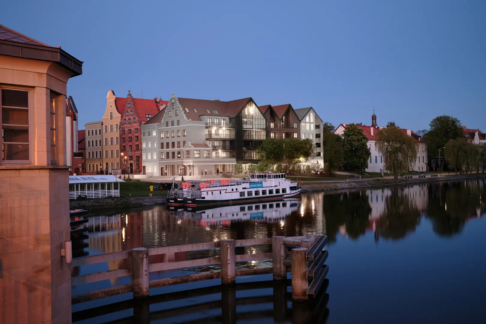 Projekt zakłada budowę sześciokondygnacyjnego budynku mieszkalno-usługowego z garażem podziemnym, wpisującego się estetyką w historyczną zabudowę okolicy. W ramach inwestycji powstanie 25 mieszkań, w tym apartamenty dwupoziomowe i lokale z antresolami, z których wiele będzie oferować widok na rzekę i nabrzeże.